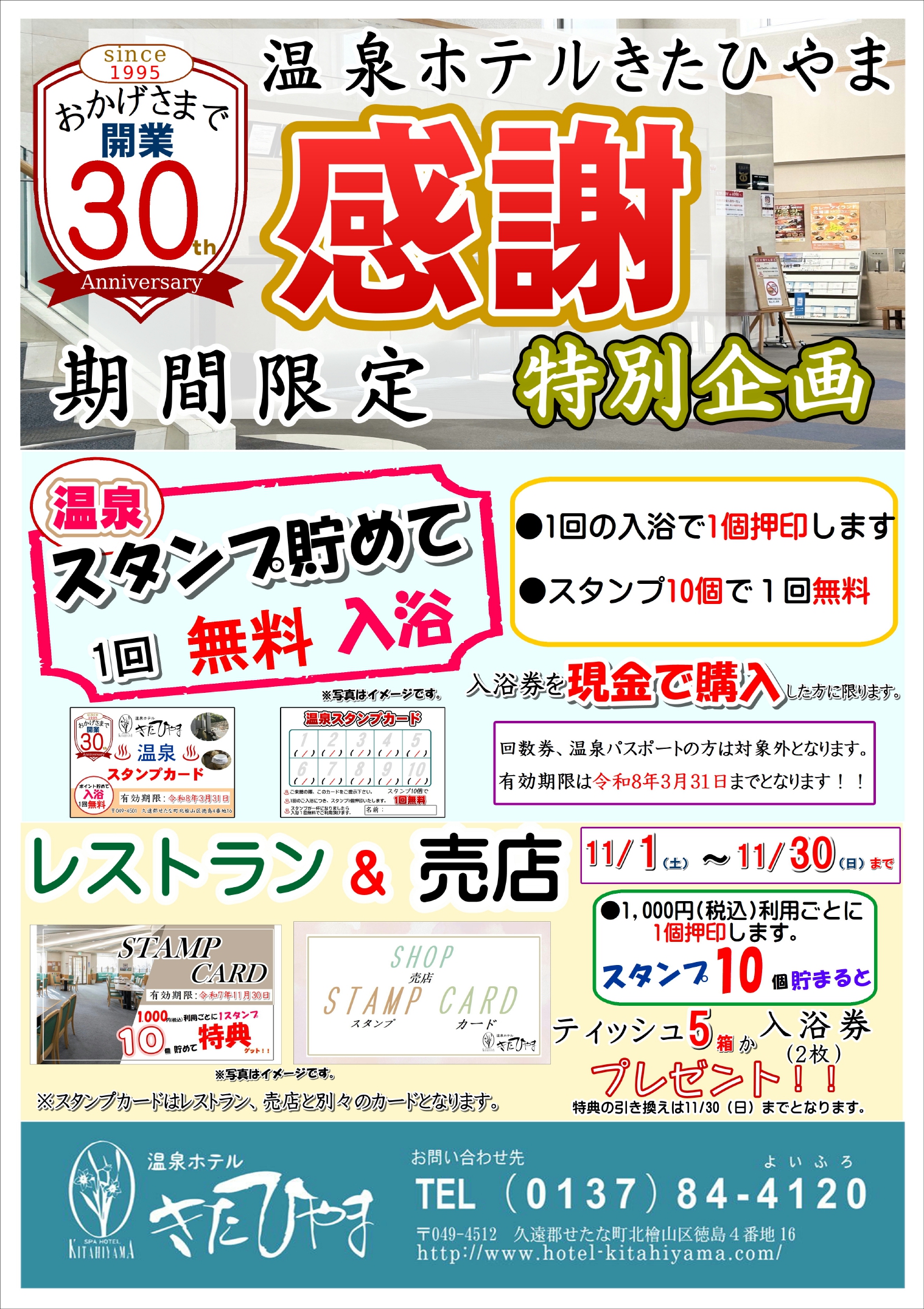 スタンプカードも温泉、レストラン、売店に用意してます!!
