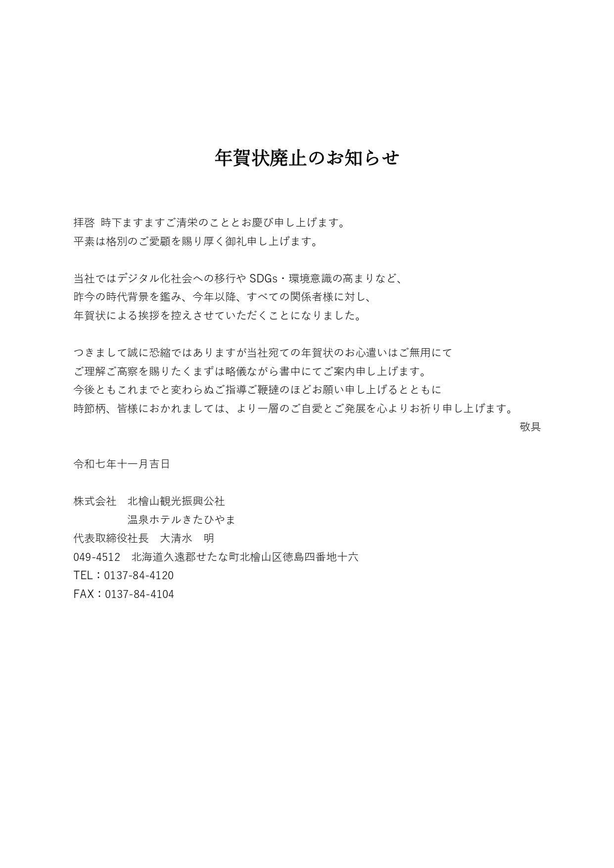 つきまして誠に恐縮ではありますが当社宛ての年賀状のお心遣いはご無用にて