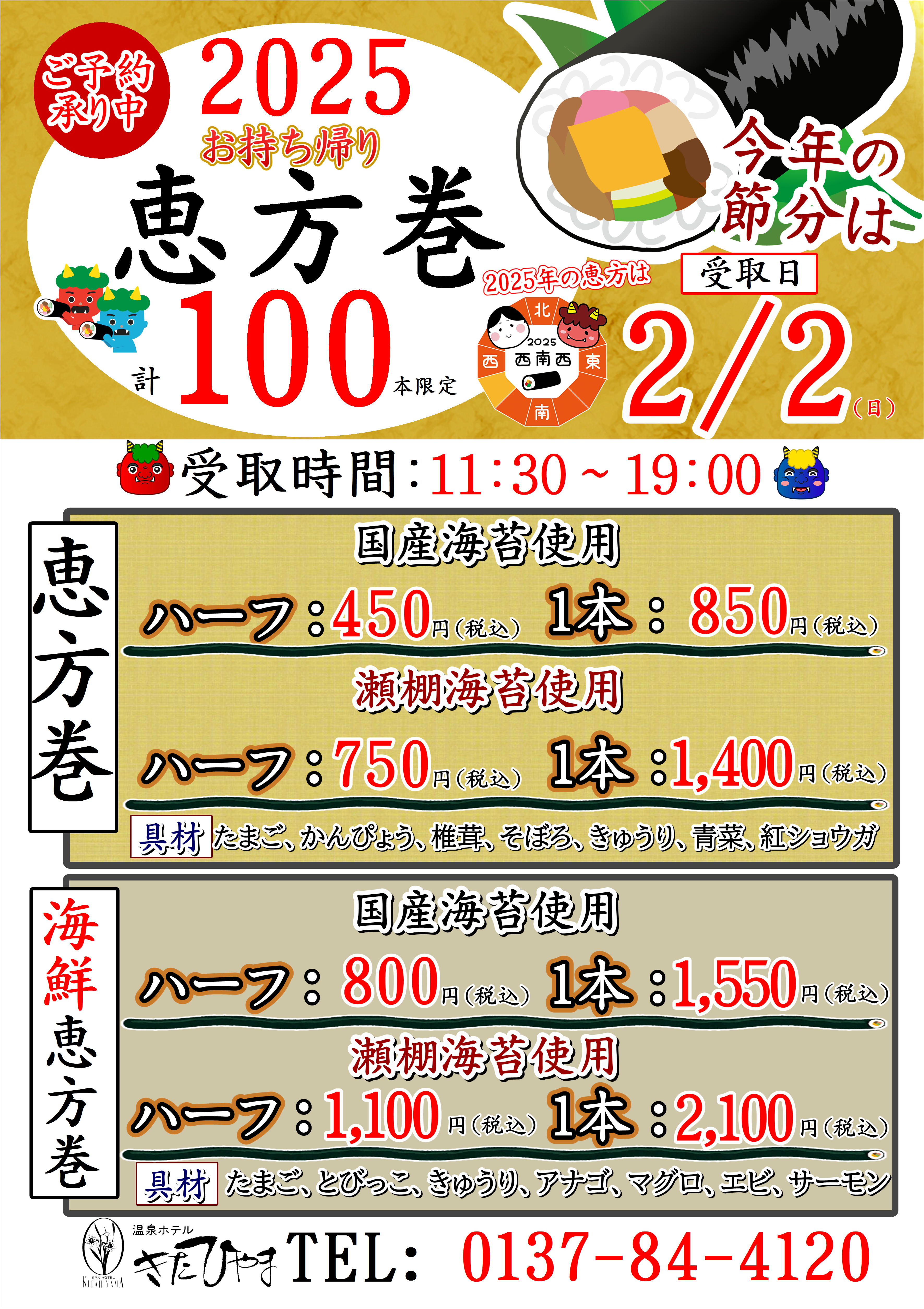 温泉ホテルきたひやまでは「大晦日限定」のお持ち帰り鮨のご予約をを承っております。