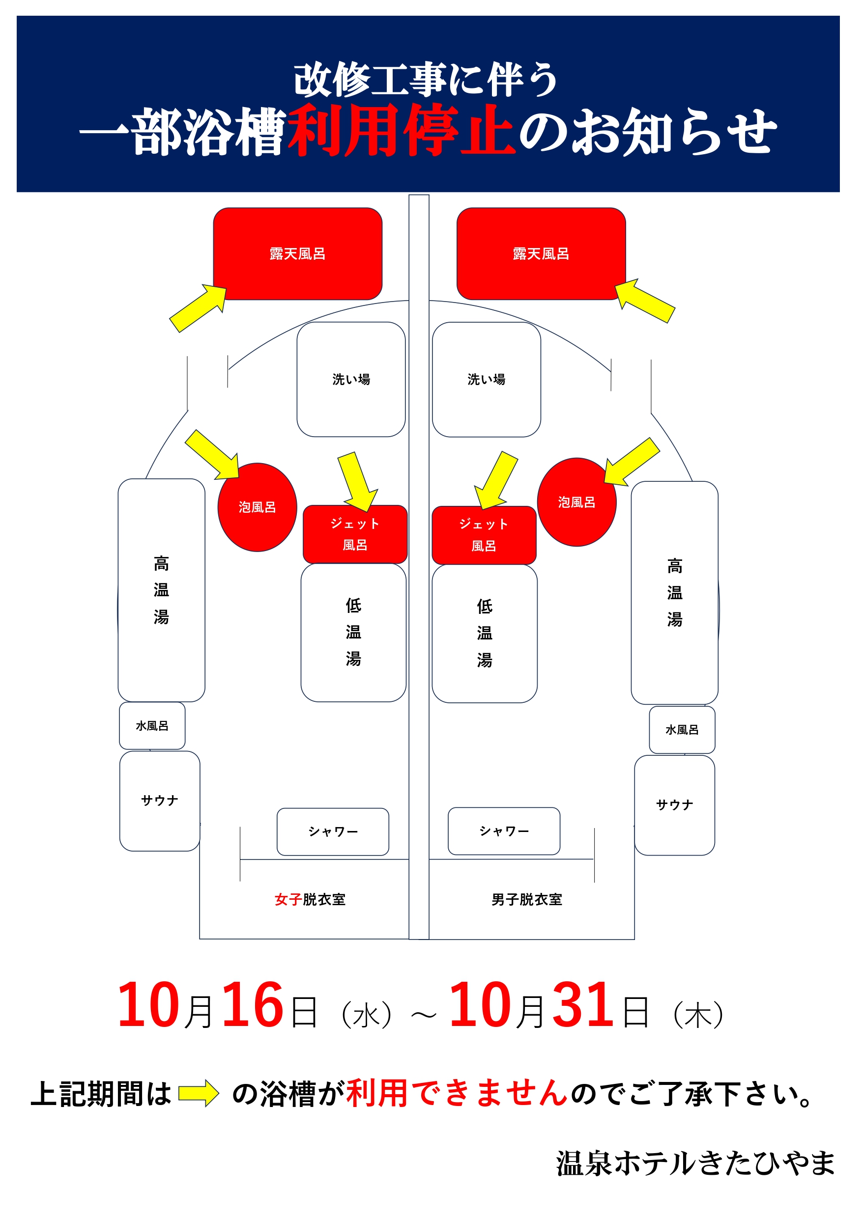 平素より温泉ホテルきたひやまをご利用いただき誠にありがとうございます